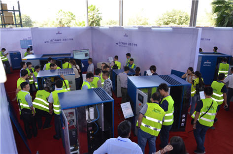 新一代LU系列螺桿式壓縮機全面提高了能源使用效率,即使在惡劣的工作環(huán)境中也能可靠運行。新款干燥機更是在環(huán)保、適應惡劣工況環(huán)境的同時,滿足客戶對潔凈空氣的需求。我們還有相對應的熱能回收,捷能管道等售后服務產品配備,全套壓縮空氣解決方案幫助客戶降低成本,提高效率。在工作人員的帶領下,與會代理商前往展廳參觀了新產品。